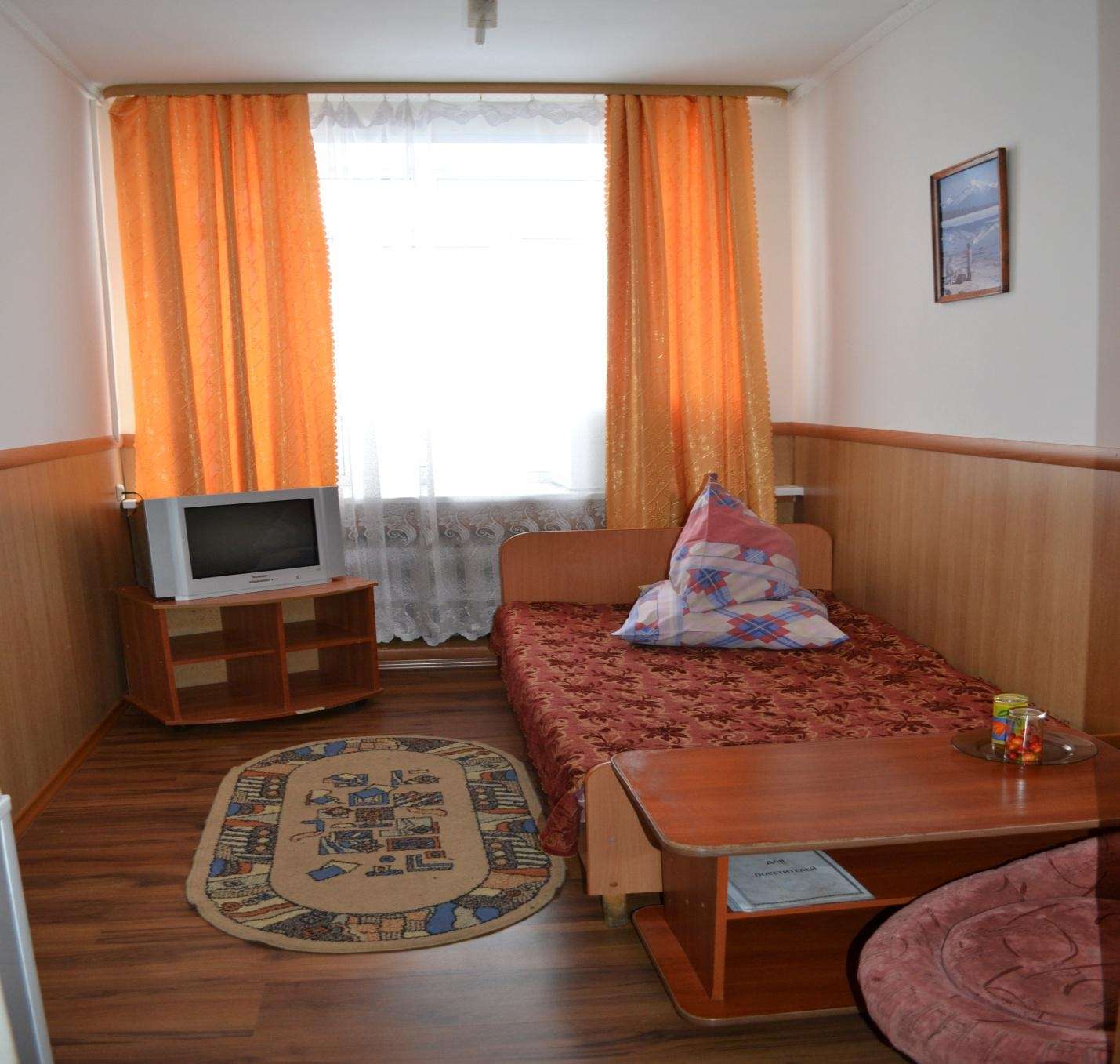К услугам гостей этого номера одна полутораоспальная кровать, журнальный столик, стулья или кресло телевизор, холодильник, раковина с горячей и холодной водой. Душ, фен по запросу. Санузел в коридоре на этаже.